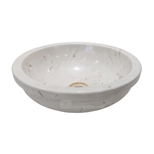 Lavamanos de mármol color crema. Medidas: 36 cm de diámetro y 16 cm de altura. No incluye fijaciones ni herrajes